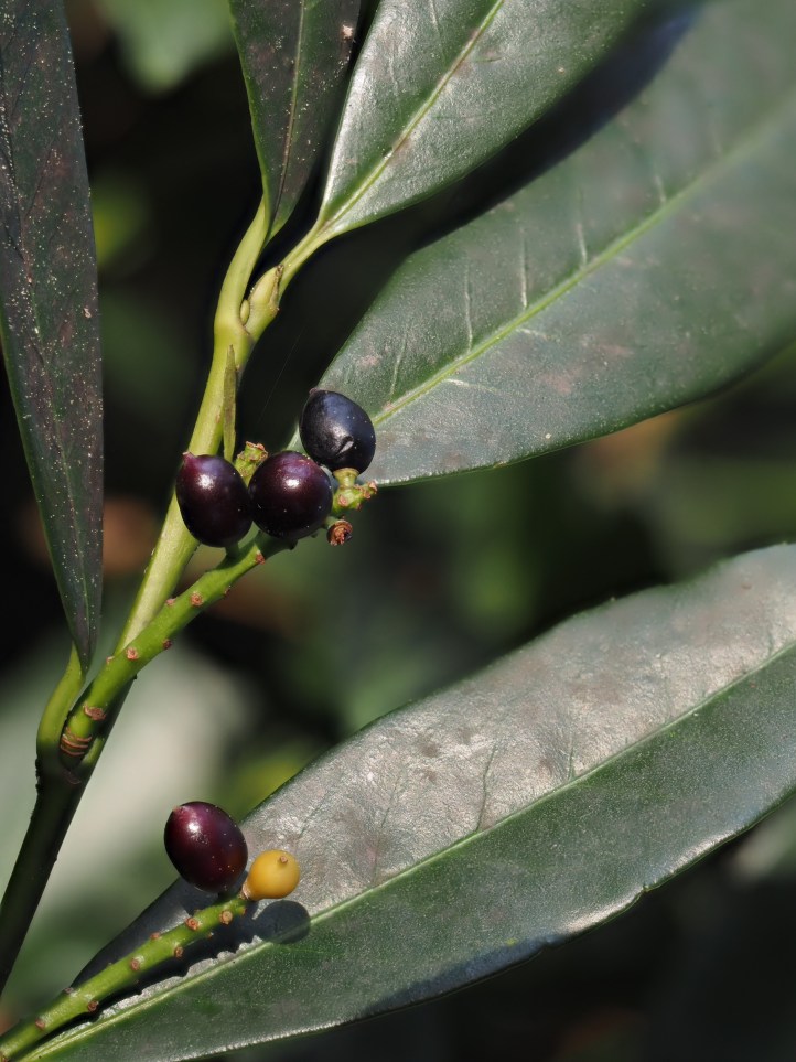 ¿Por qué?: Llama la atención sus frutos negros en contraste con el color verde brillante de las hojas.