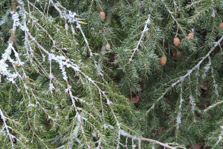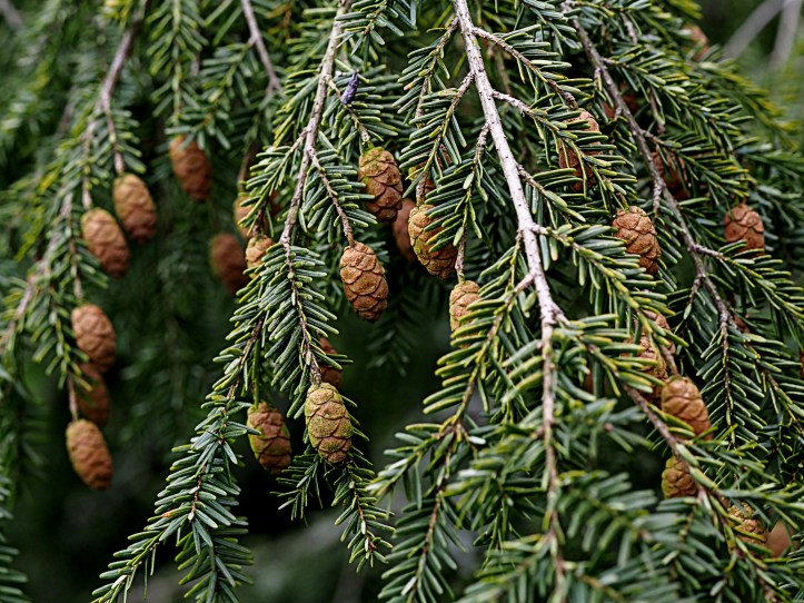 Las hojas ralladas de la tsuga del Canadá huelen parecido a la cicuta. El término “hemlock” de su nombre en inglés es el nombre inglés de la cicuta.