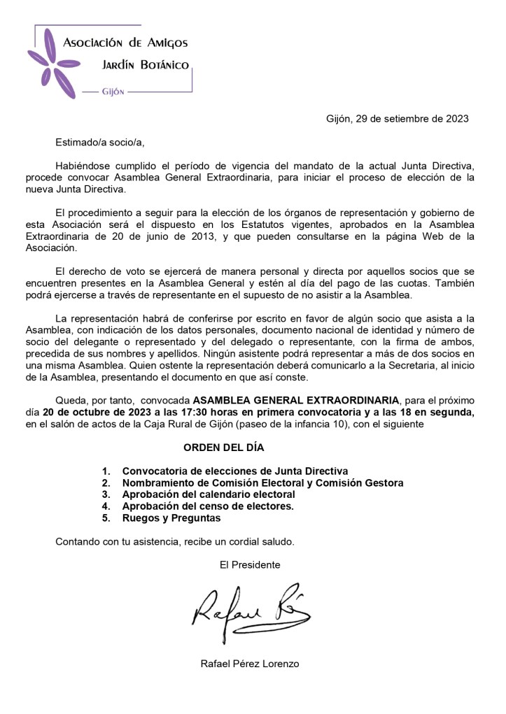 Asamblea General Extraordinaria (20/10/2023) • Elección de nueva Junta Directiva