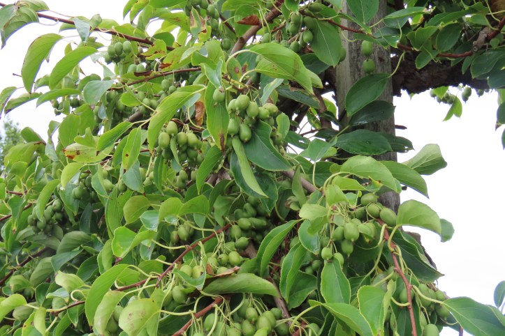 Curiosidades: Aguanta bien las bajas temperaturas pudiendo resistir hasta 30 grados bajo cero, aunque las plantas más jóvenes son menos resistentes al frío. Sin embargo, es sensible a las heladas tardías de primavera. Resiste la salinidad. Sus raíces son más superficiales que las del kiwi. Sus hojas son grandes, de color verde brillante y con forma ovalada. Sus flores son más pequeñas que las del kiwi y sus pétalos pueden llegar a tener una tonalidad amarillo-naranja. El fruto se desarrolla muy rápido pues 40 días después de la floración ya ha alcanzado el 80% de su tamaño final y entre los 75 y 100 días ya está maduro. El fruto es del tamaño de una uva pero similar al kiwi y, a menudo, más dulce que él. Se puede comer entero, sin necesidad de pelarlo.