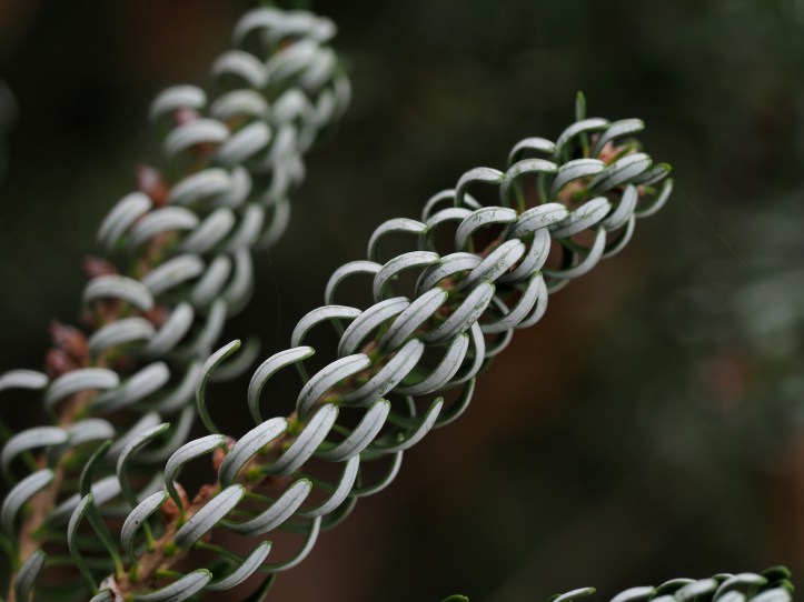 Curiosidades: Es un árbol de crecimiento lento que puede alcanzar entre 10 y 15 metros de altura y tiene forma cónica. Es uno de los abetos más pequeños. En su lugar de origen se encuentra entre los 1000 y los 1900 metros de altitud. Prefiere los climas fríos y húmedos y es muy resistente al frío y a las heladas. No tolera bien el calor ni la sequía prolongada. Se introdujo en occidente en el siglo XIX. En Gran Bretaña no se introdujo hasta 1931 y, sin embargo, es el abeto más extendido allí. Su corteza es lisa y gris y, cuando llega a la madurez, se cuartea en pequeñas placas cuadradas. Las hojas tienen debajo unas bandas blancas brillantes que casi se unen y, a menudo, también tienen una mancha blanca encima, cerca del ápice. Al restregarlas desprenden un aroma resinoso y afrutado. Florece en primavera con flores masculinas y femeninas en el mismo árbol. Los conos o piñas son abundantes; en los árboles jóvenes son de color violeta y al madurar se vuelven de color marrón. En concreto el cultivar ‘blue emperor’ (al que pertenece el ejemplar del botánico) se distingue de la especie tipo por: Agujas de color azul acero muy intenso, más marcadas que en la variedad silvestre. Conos púrpura erectos que contrastan fuertemente con el follaje azul. Crecimiento lento; solo 5–15 cm por año. Tamaño adulto: Altura: 2–3 m; anchura: ~2,5 m. Porte: piramidal compacto, ideal para jardines pequeños, rocallas o cultivo en contenedor. Considerado uno de los abetos enanos azules más decorativos. Su crecimiento lento lo hace perfecto para espacios reducidos o colecciones de coníferas. Prácticamente libre de enfermedades, aunque conviene vigilar áfidos (pulgones) y adélgidos.